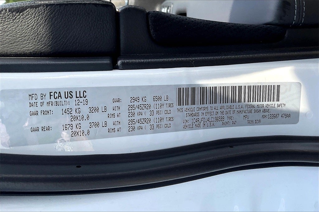 Priced below KBB Fair Purchase Price! Odometer is 8480 miles below market average! Clean CARFAX. Bright White Clearcoat 2020 Jeep Grand Cherokee SRT 4WD 8-Speed Automatic SRT HEMI 6.4L V8 MDS New Tires, 4WD, 7 & 4 Pin Wiring Harness, Class IV Receiver Hitch, Dual-Pane Panoramic Sunroof, Heavy-Duty Engine Cooling, Navigation System, Premium Headliner Module, Quick Order Package 29L, Trailer Tow Group IV.