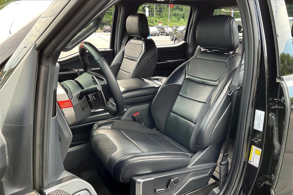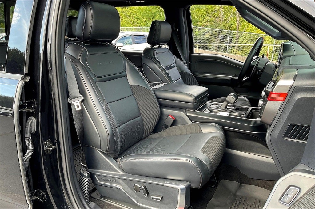 Clean CARFAX. Black Metallic 2023 Ford F-150 Raptor 4WD 10-Speed Automatic 3.5L V6 EcoBoost 4WD, Equipment Group 801A Standard, GVWR: 7,300 lbs Payload Package, Moonroof & Tailgate, Navigation system: Connected Navigation, Power Tailgate, Raptor Carbon Fiber Package, Raptor Exterior Graphics Package, Twin Panel Moonroof.